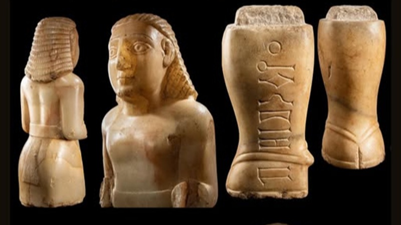 وأوضح أن أبرز القطع المعروضة في المزاد هو تمثال لرجل واقف يرتدي ثوباً ضيقاً يصل إلى الركبة، بحزام يحدد الخصر، وشعر مصفوف في ضفائر دقيقة، ووجه مميز بأنف مستقيم وعينين محفورتين بعمق، يُعتقد أنهما كانتا مرصعتين بالأحجار الكريمة أو الأصداف.