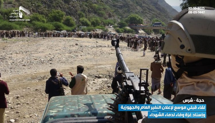 كما أضاف قبائل شرس في حجة، في نكف قبلي اليوم، تأكيدًا على موقفهم الثابت في مواجهة العدو الصهيوني، مؤكدين استعدادهم للجولة القادمة في مواجهة الاحتلال الإسرائيلي، مع رفع الجاهزية العالية لتلبية أي نداء للقتال ضد الأعداء.