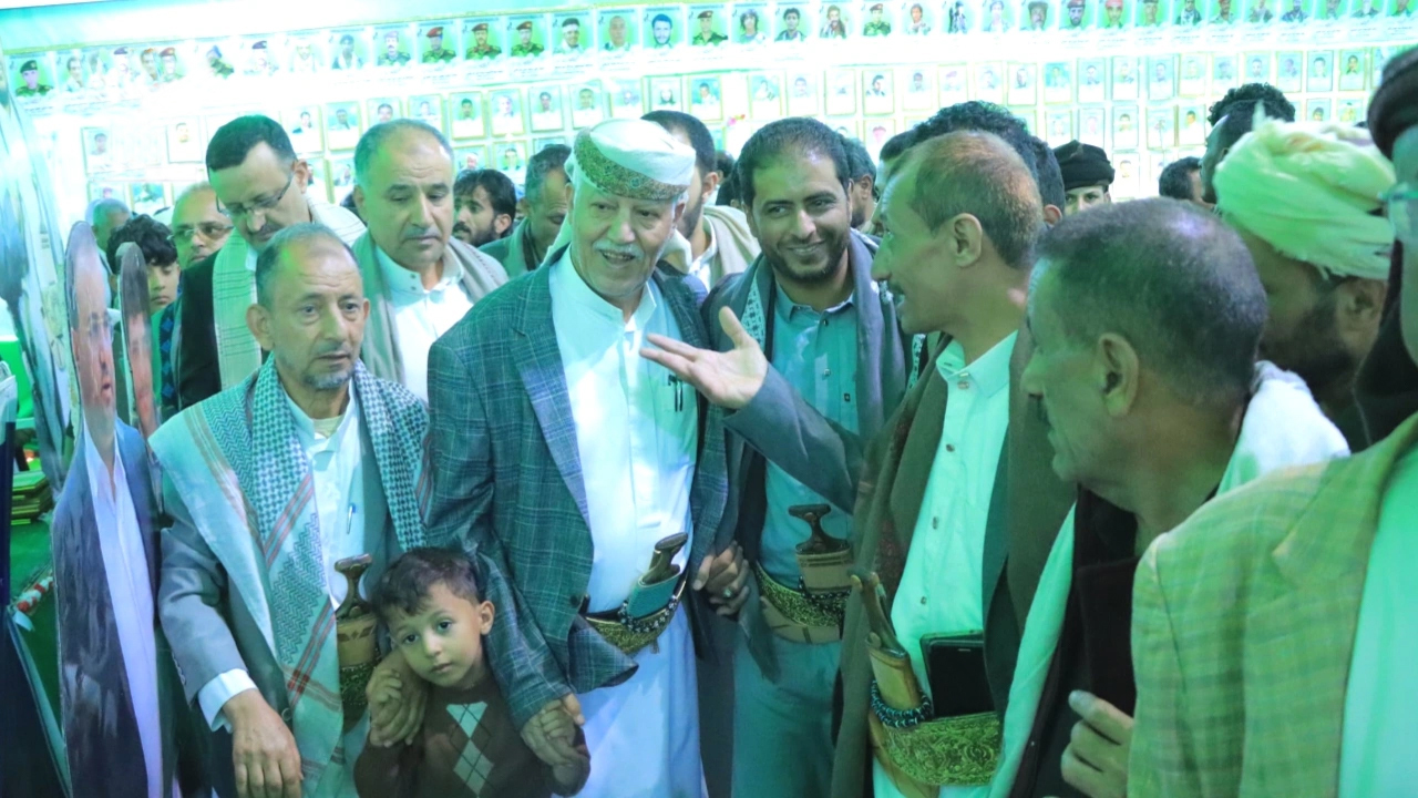 وطافوا بأجنحة المعرض الذي ضم صوراً ومجسمات توثق ملاحم الشهداء وتضحياتهم في مواجهة العدوان.