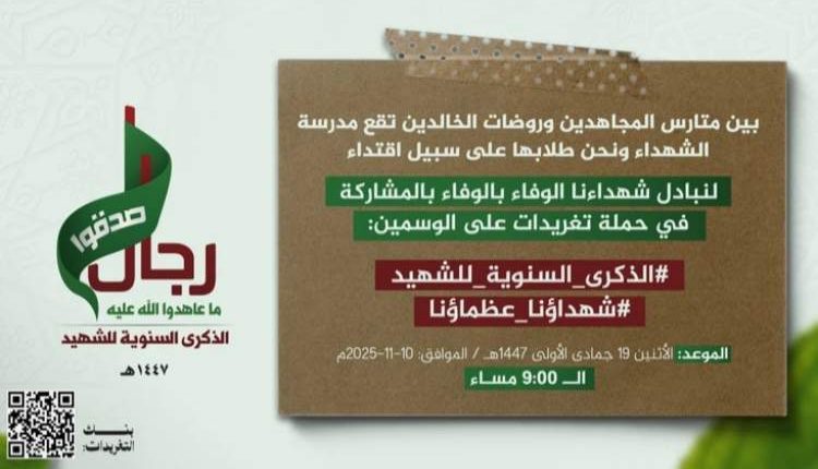 تنطلق في الساعة التاسعة من مساء اليوم، حملة تغريدات على موقع التواصل الاجتماعية “إكس” وفاء للشهداء العظماء.