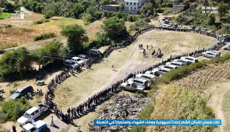 وفي محافظة تعز، احتشد أبناء مديريات شرعب الرونة والصلو ومربع شمير في لقاءات قبلية مسلحة عبّرت عن تجذّر الروح الثورية واستمرار حالة النفير العام.