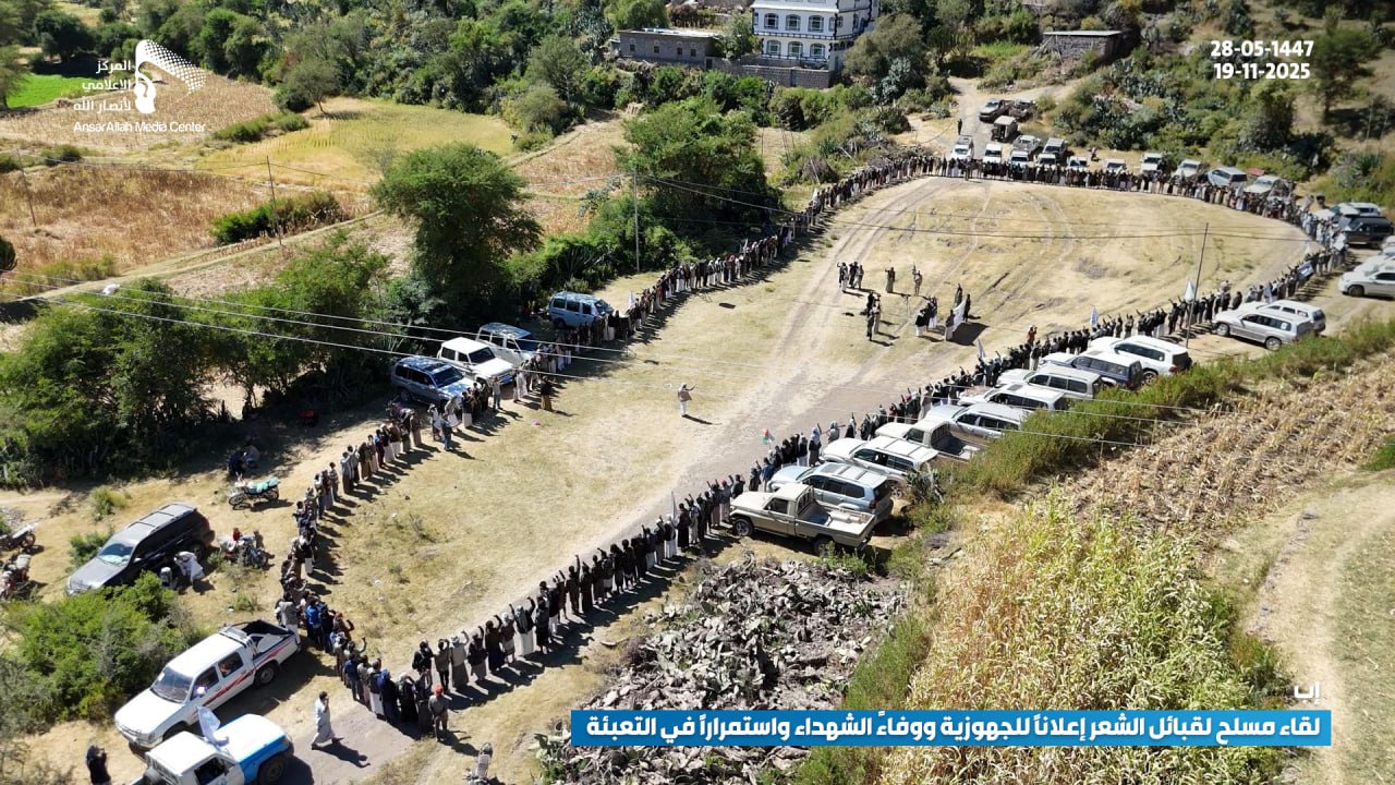 ومن إب إلى حجة، ومن تهامة إلى تعز، ارتفعت الهتافات الموحدة التي تعلن “النفير العام” و”الجهوزية الشاملة” و”الوفاء للشهداء”، في مشهد يعكس وحدة الموقف الشعبي والقبلي اليمني خلف القيادة الثورية في مواجهة العدوان الأمريكي الصهيوني، وتأكيد أن اليمن اليوم حاضر في قلب معركة الأمة، مدافعٌ عن قضاياها، وفي مقدمتها فلسطين، وماضٍ بثقةٍ ويقينٍ نحو النصر والفتح الموعود.