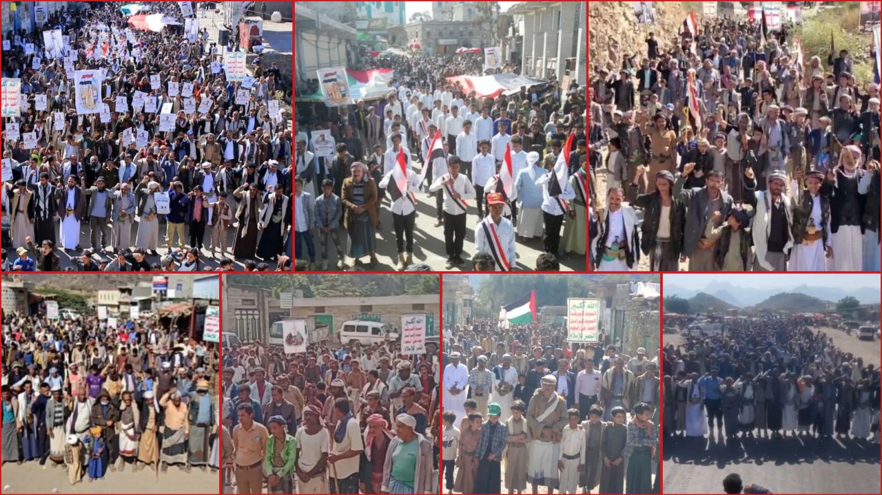 أما في محافظة ذمار، فقد شهدت 44 مسيرة جماهيرية حاشدة خرج فيها أبناء المحافظة من كافة المديريات تأكيدًا على استعدادهم الكامل لمواصلة نهج الجهاد والتضحية في سبيل التحرر والاستقلال.