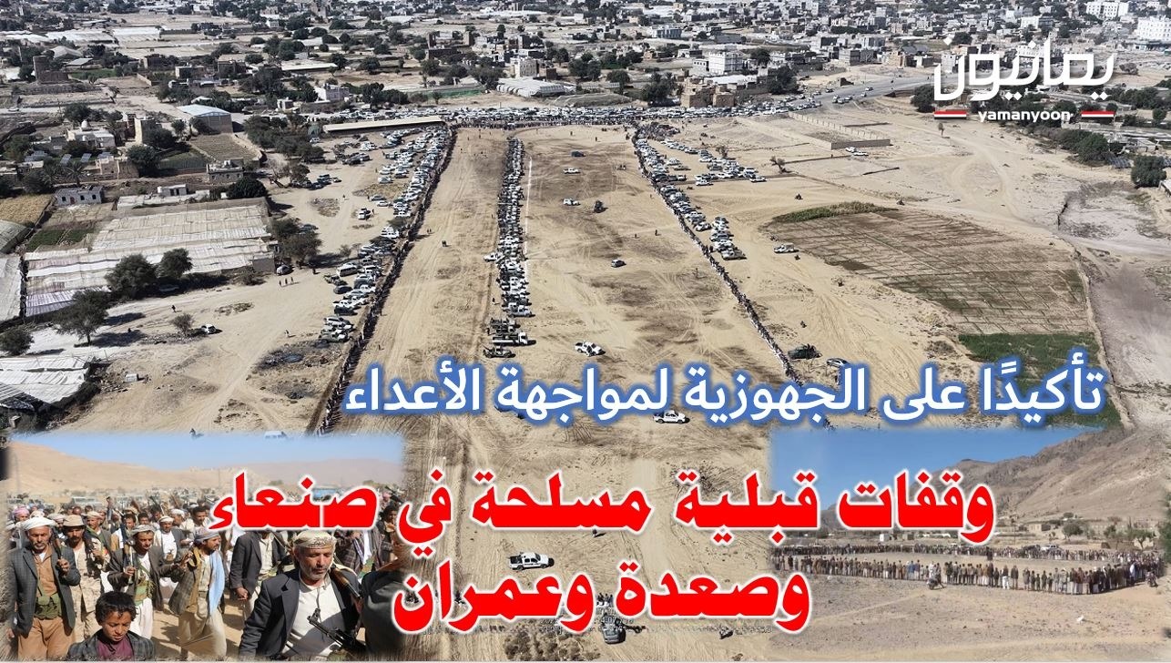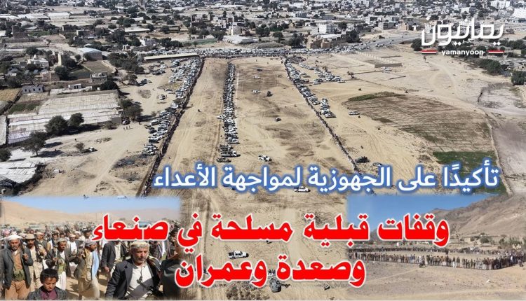 وفي محافظة عمران، خرجت قبائل مديرية بكيل السواد في “نكف مسلح حاشد” مؤكدة على الجاهزية الكاملة لمواجهة أي تصعيد قادم.