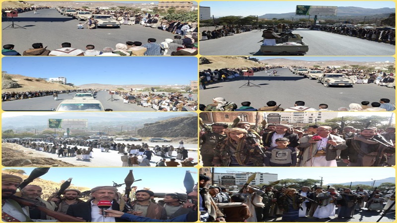 تستمر الوقفات المسلحة في مديريات الأمانة ومحافظتي صنعاء وصعدة وغيرها من المحافظات تأكيداً على الجهوزية القتالية العالية، والإعلان عن استمرار التعبئة العامة لمواجهة الأعداء.