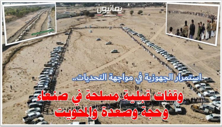استمرار التعبئة والجهوزية في مواجهة التحديات.. وقفات قبلية مسلحة في صنعاء وحجة وصعدة والمحويت