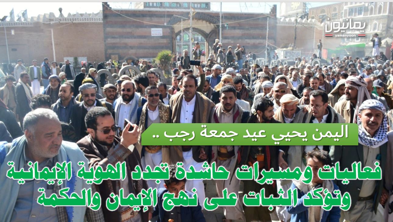 اليمن يحيي عيد جمعة رجب .. فعاليات ومسيرات حاشدة تجدد الهوية الإيمانية وتؤكد الثبات على نهج الإيمان والحكمة