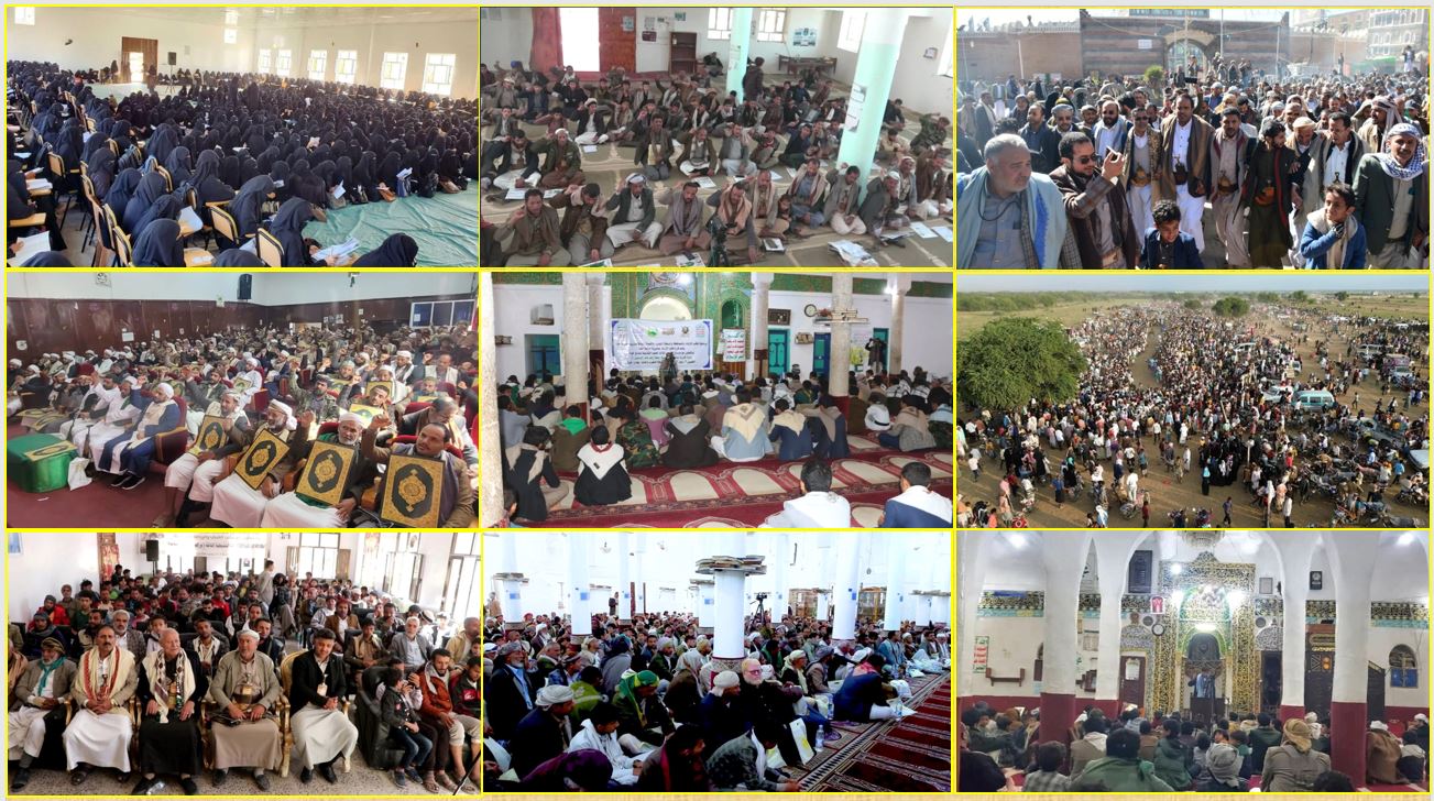 وفي محافظة ذمار، عُقد لقاء علمائي موسع للعلماء والخطباء والمرشدين بعنوان «مسؤولية العلماء والخطباء في الانتصار لكتاب الله والمقدسات وترسيخ الهوية الإيمانية»، شدد على أن الإساءات المتكررة للقرآن الكريم تمثل حربًا ممنهجة تستهدف الأمة، وتستوجب موقفًا موحدًا ومسؤولًا، مع التأكيد على الجهوزية العالية لمواجهة الأعداء.