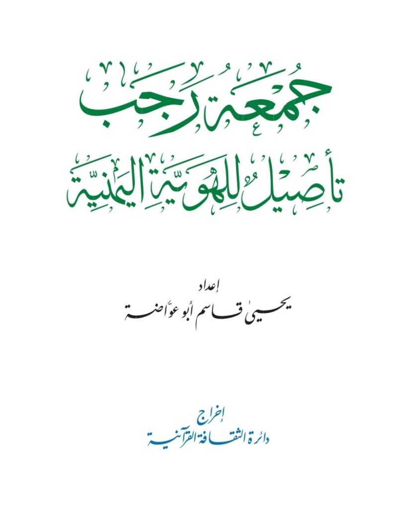 بثوب قشيب ومواد نوعية.. أصدرت دائرة الثقافة القرآنية الطبعة الثالثة لكتيب “جمعة رجب تأصيل للهوية اليمنية” أعده الأستاذ يحيى قاسم أبو عواضة, في 119 صفحة, ويتضمن 114 موضوعا وعنوانا شيقا حول هذه المناسبة بكافة أبعادها ومعانيها ودلالاتها ومكانتها وعظمتها في قلوب اليمنيين, ويقدم رؤية عميقة تربط الحاضر اليمني بجذوره التاريخية والدينية العريقة