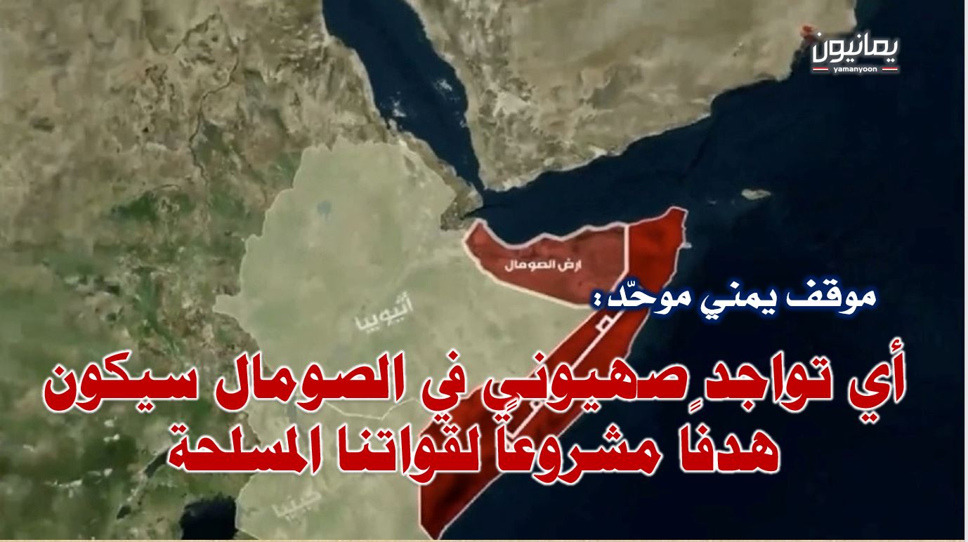 موقف يمني موحّد: أي تواجد صهيوني في الصومال سيكون هدفًا مشروعًا لقواتنا المسلحة