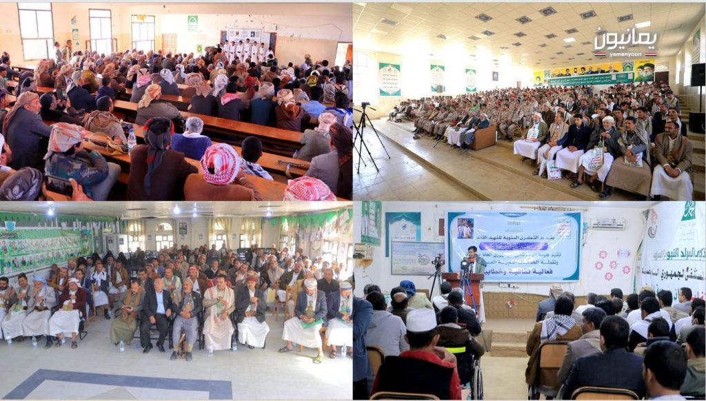 وفي المحويت، نظمت المكاتب الخدمية وقطاعات الصحة والتربية والزراعة والاتصالات والهلال الأحمر فعاليات خطابية أكدت أن الشهيد القائد أحيا ثقافة القرآن ونصرة المستضعفين ومقارعة الطغاة، وأن ثمار مشروعه تجلت في الصمود الأسطوري للشعب اليمني أمام العدوان.