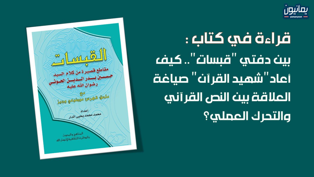 في قالب موضوعي ميسر، صدر حديثاً كتاب “قبسات”، عن قطاع المناهج والبحوث بالدائرة الثقافية لأنصار الله، أعده الأستاذ محمد محمد يحيى الدار، وهو عمل توثيقي ضخم يضم أكثر من 4900 مقاطع قصيرة ومختارة من دروس هدي القرآن ومحاضرات الشهيد القائد المؤسس السيد حسين بدر الدين الحوثي”رضوان الله تعالى عليه” لإحياء الروح القرآنية في ضمائر الأمة الإسلامية ونفوس الجيل الصاعد من أبنائها، ويقرأ الماضي ليفهم الحاضر ويبني المستقبل برؤية قرآنية ثاقبة.