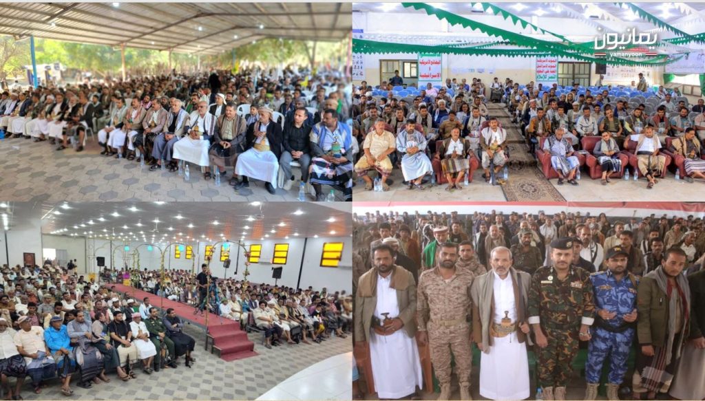 وفي محافظة المحويت، نظّمت مديريات المدينة والرجم والمحويت فعالية خطابية تحت شعار “الشهيد القائد عنوان لقضية عادلة ومؤسس المشروع العظيم”، أكدت الكلمات أن إحياء الذكرى يجسد الوفاء لمسيرة الشهيد الجهادية والفكرية، واستحضار مواقفه في مقارعة الظلم والطغيان والدفاع عن المستضعفين، مشيرة إلى أنه أعاد للأمة وعيها وهويتها، وحصّن المجتمع من مخاطر الهيمنة الثقافية والفكرية.