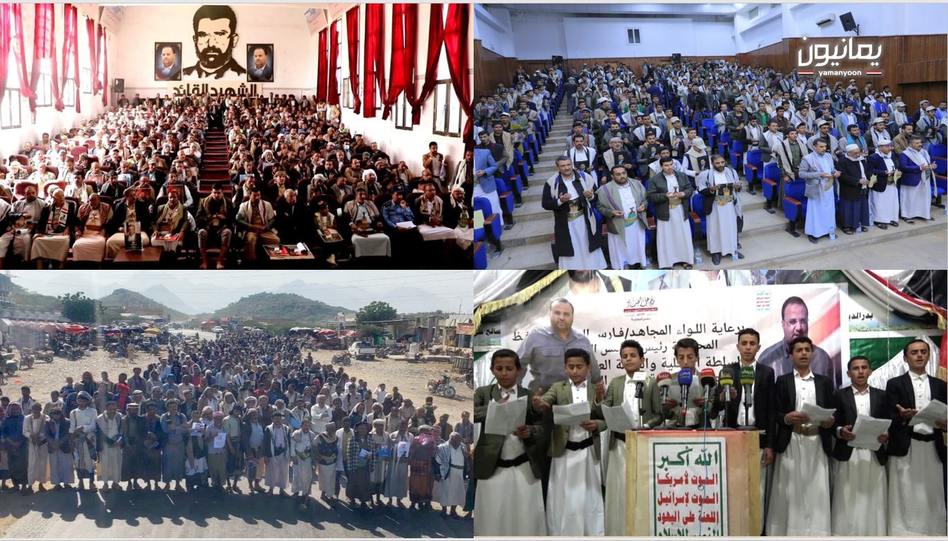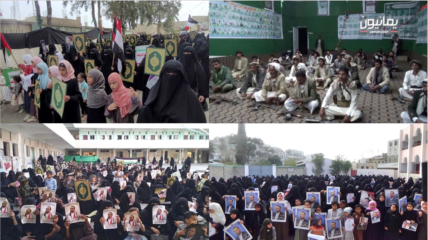 كما نظمت الهيئة النسائية بمحافظة حجة فعاليات ووقفات واسعة في عدد من المديريات، رددت فيها شعارات الصمود والسير على نهج الشهيد، واعتبرنه النموذج الإيماني الأرقى للمشروع القرآني الذي كشف المؤامرات الأمريكية والصهيونية وقدم الحلول لمواجهتها.