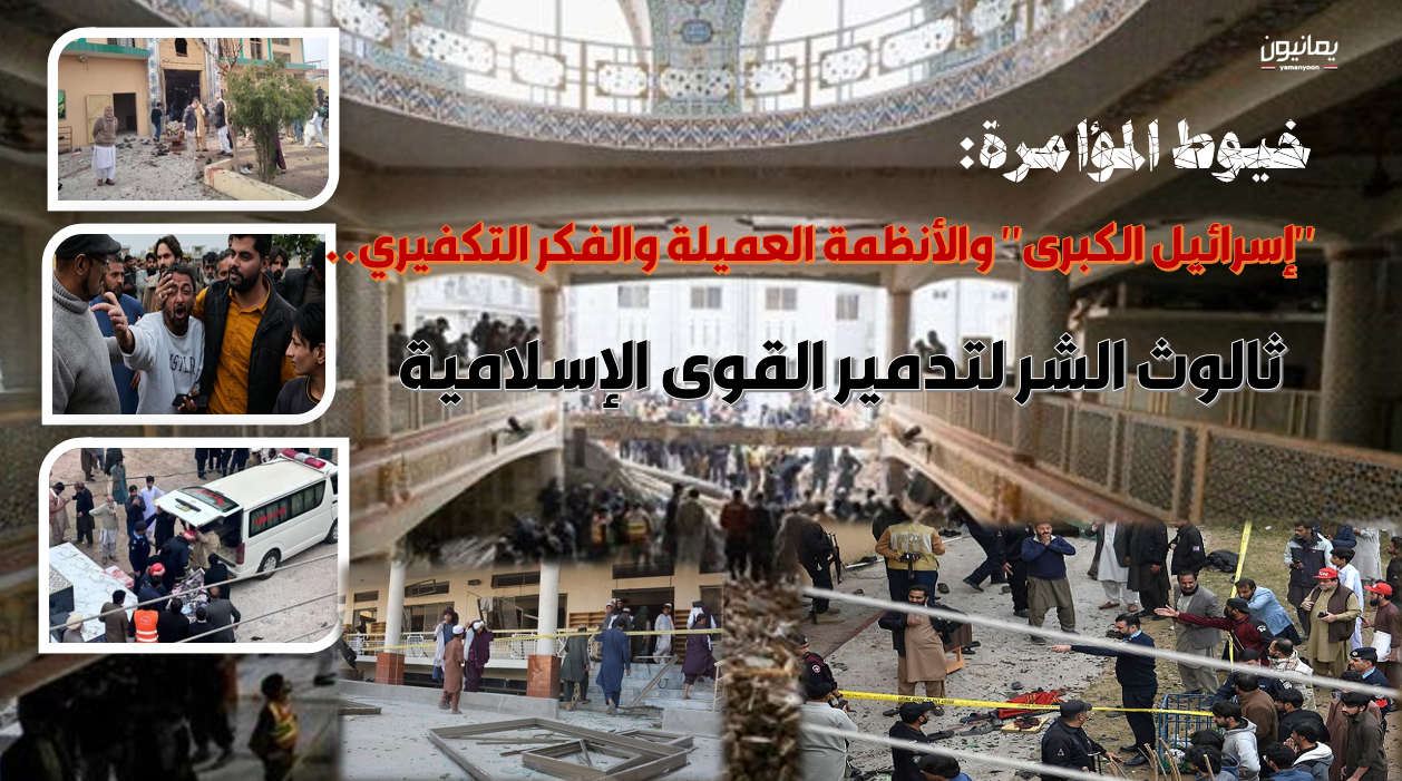 بالعودة إلى عملية التفجير الإرهابية نجد أنها ليست مجرد صدفة أن يتزامن الدخان المتصاعد من مسجد المصلين في إسلام آباد مع الظلال القاتمة لفضائح الفساد الأخلاقي والقيمي التي صدمت العالم بأسره على خلفية انتشار جرائم المعلون الصهيوني” جزيرة جيفري ابستين”تلاحق عروشًا عربية, وعالمية ودولية, فخيوط المؤامرة التي تُحاك ضد العالم الإسلامي باتت أكثر وضوحًا من أي وقت مضى؛ فمن جهة، تُستخدم الجماعات التكفيرية كقنابل موقوتة لتفجير الدول من الداخل، ومن جهة أخرى، يُستخدم الابتزاز السياسي والفساد الأخلاقي كقيود لترويض الحكام وضمان ولائهم, في سياق استراتيجية كبرى تهدف إلى تفكيك أي قوة إسلامية صاعدة, ويضع باكستان، القوة النووية الوحيدة في العالم الإسلامي، في دائرة الخطر المباشر، كما أنه يعيد إلى الأذهان سيناريوهات الفوضى التي مهدت لحروب مدمرة في المنطقة، كاشفًا عن ثالوث خطير: مخطط خارجي للهيمنة، وأنظمة حاكمة مرتهنة، وأداة تكفيرية لتنفيذ أجندة الدم.