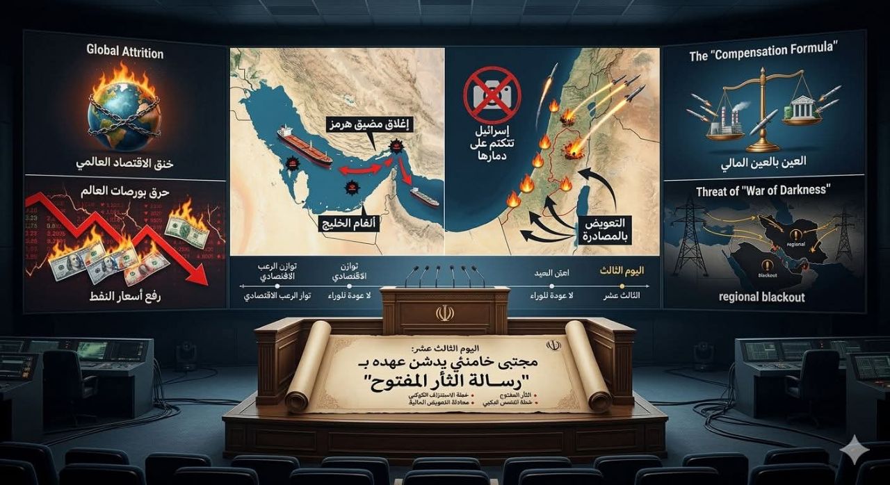 اليوم الثالث عشر: السيد مجتبى خامنئي يدشن عهده بـ “رسالة الثأر المفتوح”.. وإسرائيل تتكتم على دمارها الداخلي، بينما يحرق “الاستنزاف الإيراني” بورصات العالم!