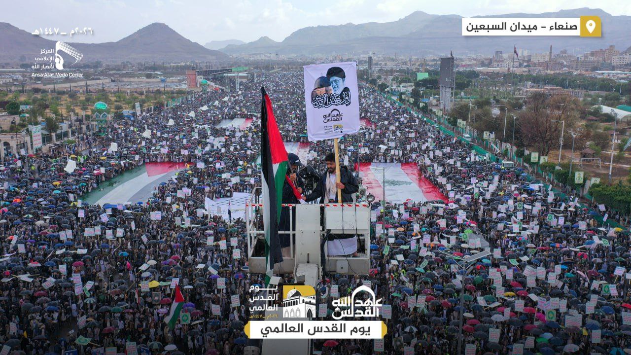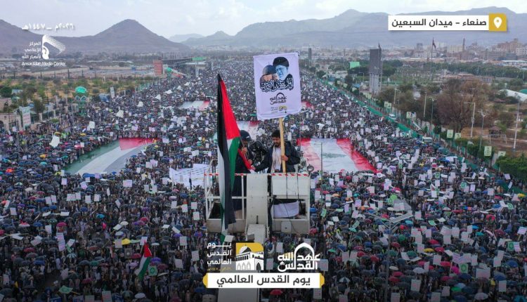 بزخمٍ مليوني غير مسبوق, تحولت العاصمة اليمنية صنعاء وعشرات الساحات في مختلف المحافظات الحرة، عصر اليوم الجمعة، إلى بحارٍ بشرية هادرة أحيت مناسبة “يوم القدس العالمي” , وتضامناً مع “إيران ولبنان” ضد العدوان, وتحت زخات المطر التي باركت جموع المحتشدين في ميدان السبعين، صدحت حناجر اليمنيين برسائل مدوية أكدت أن القدس عقيدة إيمانية ومسار جهادي لا يحيد، معلنين الالتحام الكامل مع محور المقاومة في معركة “اجتثاث الغدة السرطانية الصهيونية”.