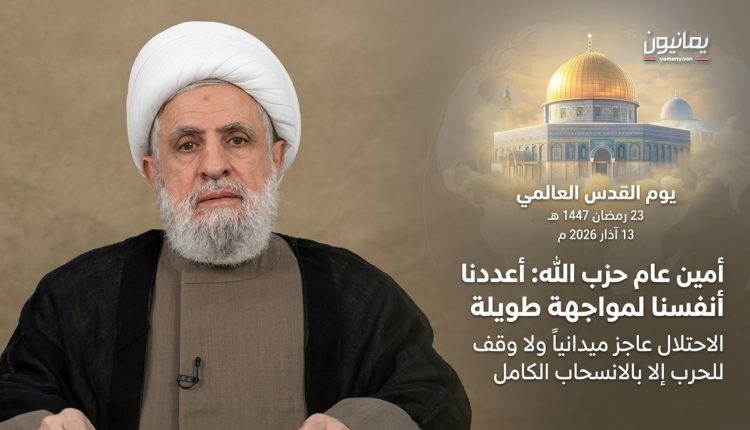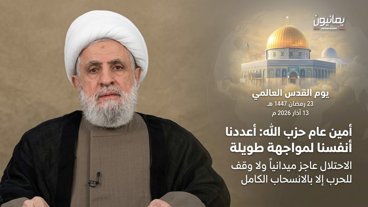 في رحاب يوم القدس العالمي، وبما يحمله من روحية الإيمان ونصرة المستضعفين، ألقى الأمين العام لحزب الله، الشيخ نعيم قاسم، اليوم خطاباً مفصلياً أكد فيه أن يوم القدس هو صرخة للتحرر من نير العبودية والظلم.واعتبر أن زرع الكيان الصهيوني في قلب المنطقة عام 1948 برعاية أمريكية وغربية هو “غدة سرطانية” منعت الاستقرار لأكثر من سبعين عاماً، ولن يدع المنطقة تستقر ما دام موجوداً وقائماً.