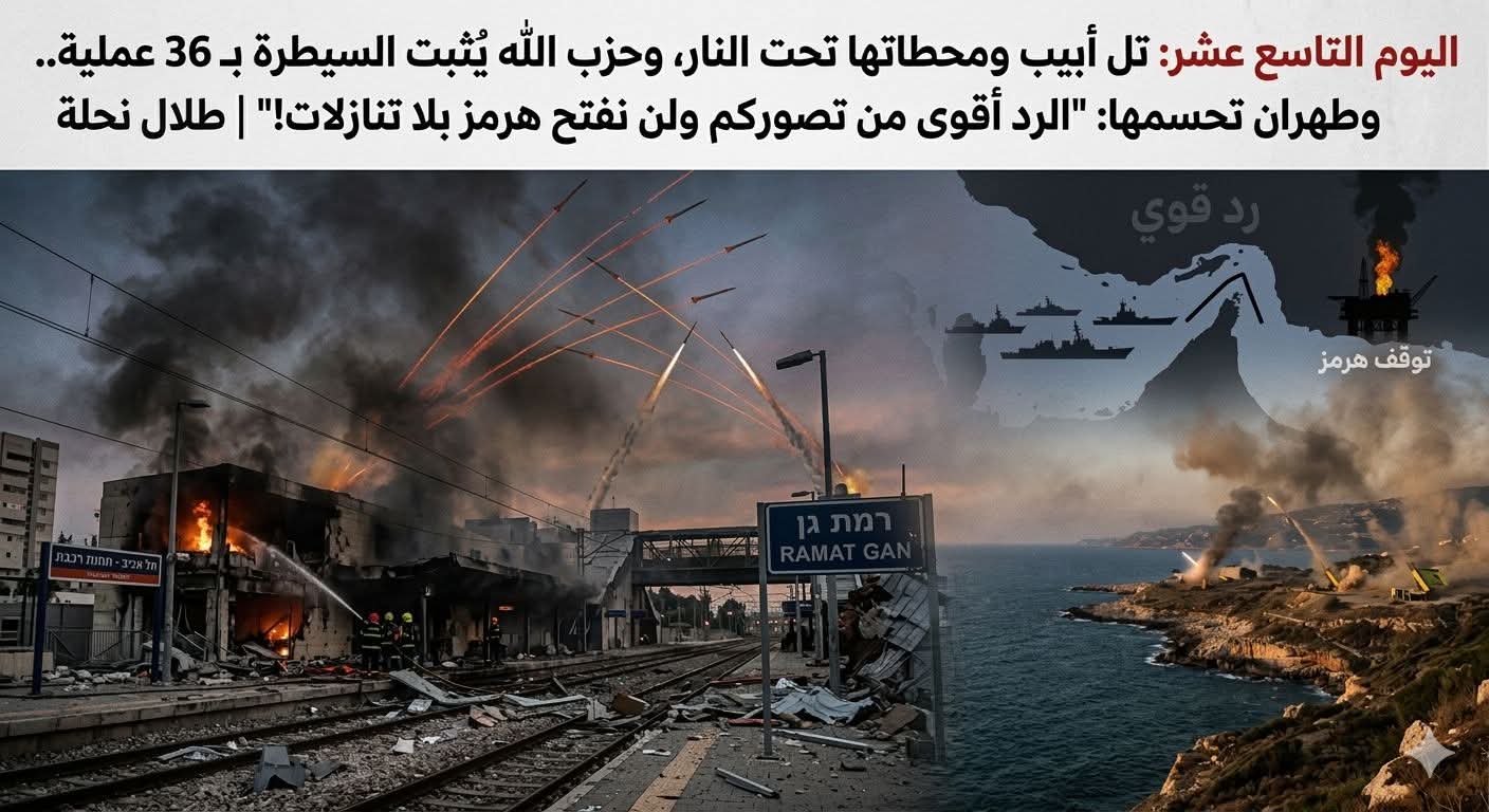 اليوم التاسع عشر: تل أبيب ومحطاتها تحت النار، وحزب الله يُثبت السيطرة بـ 36 عملية.. وطهران تحسمها: “الرد أقوى من تصوركم ولن نفتح هرمز بلا تنازلات!”