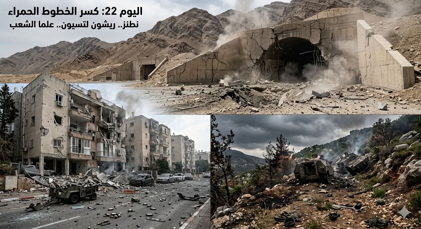 مع دخول وسط اليوم الثاني والعشرين من الحرب، يكسر الصراع آخر المحرمات, واشنطن تقود تصعيداً غير مسبوق بتوجيه قنابلها الخارقة للتحصينات نحو منشأة “نطنز” النووية، لكن طهران، ردت بـ “الموجة 71″، كاشفة عن أسلحة متطورة (صواريخ بانشطارات ثلاثية وعنقودية) دمرت أجزاء واسعة من وسط إسرائيل (ريشون لتسيون)، وأحالت القواعد الأمريكية في الخليج إلى أهداف استنزاف يومية.