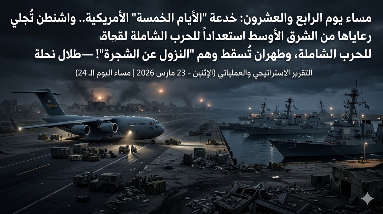 * الخداع المالي والعسكري: ترامب أعلن تأجيل الضربات لـ 5 أيام ليهدئ بورصات النفط والأسهم (التي كانت ستنهار لو نُفذ التهديد فوراً)، وفي نفس الوقت، يستخدم هذه الأيام الخمسة لانتظار استكمال جهوزية الـ 22 دولة من الناتو (الذين وافقوا أخيراً على الانضمام لفتح هرمز).