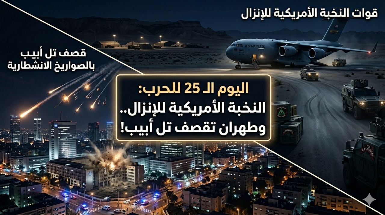 ندخل اليوم الخامس والعشرين من الحرب، لتنكشف حقيقة ما يسمى بـ “المفاوضات” الأمريكية: إنها أكبر عملية خداع استراتيجي وحشد عسكري في تاريخ الشرق الأوسط الحديث. بينما كان ترامب يوهم العالم بـ “المرونة”، كانت طائرات الشحن الأمريكية تُفرغ أخطر قوات النخبة (الفرقة 82 المحمولة جواً، قوات دلتا، رينجرز، والسيلز) في قواعد الأردن وإسرائيل. هذا الحشد المرعب يشير بوضوح إلى تحضير أمريكي لـ “إنزال بري” أو عملية نوعية كبرى في الساعات القادمة.