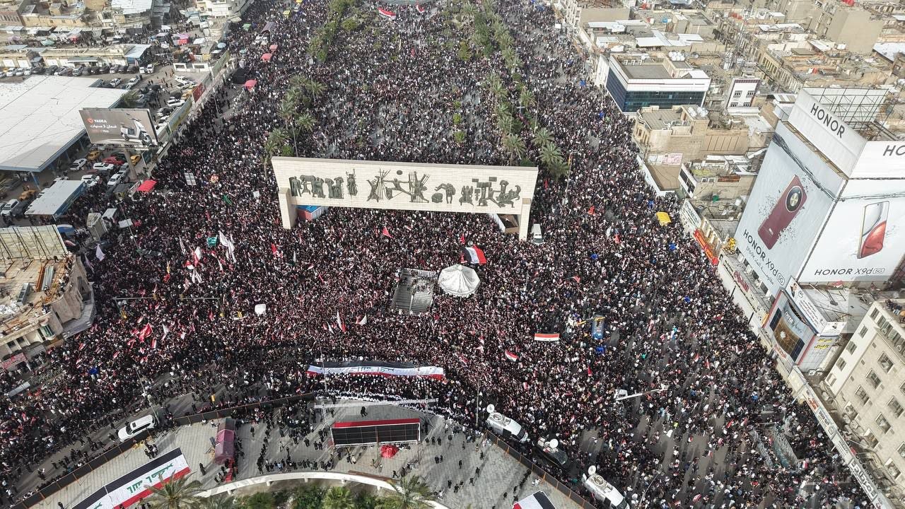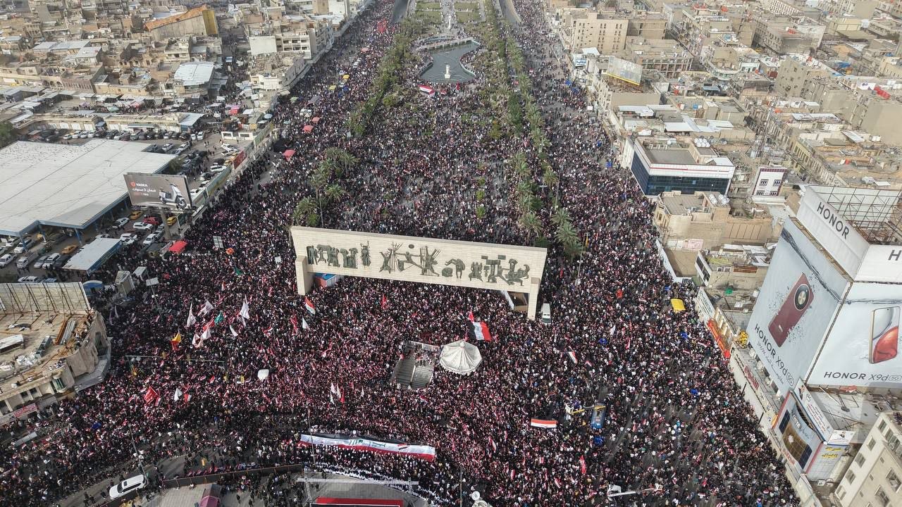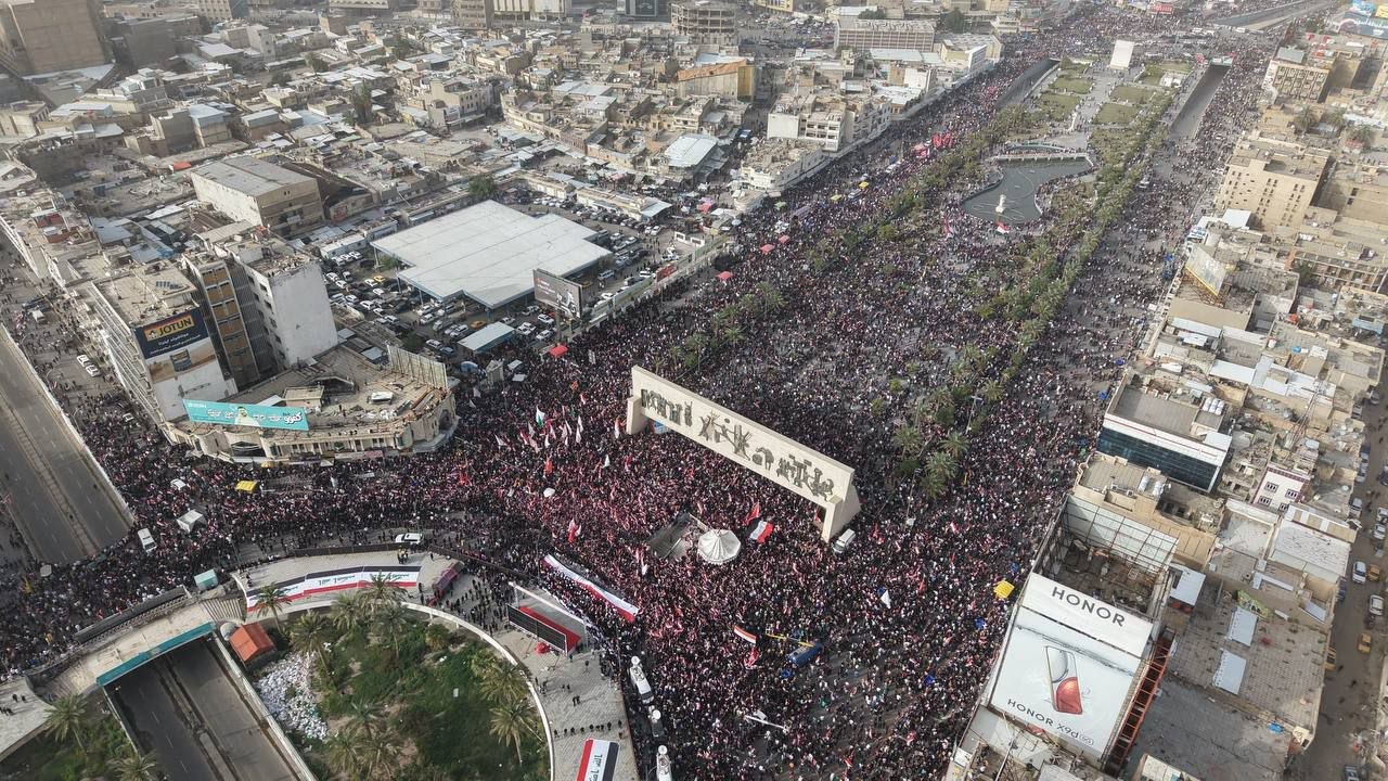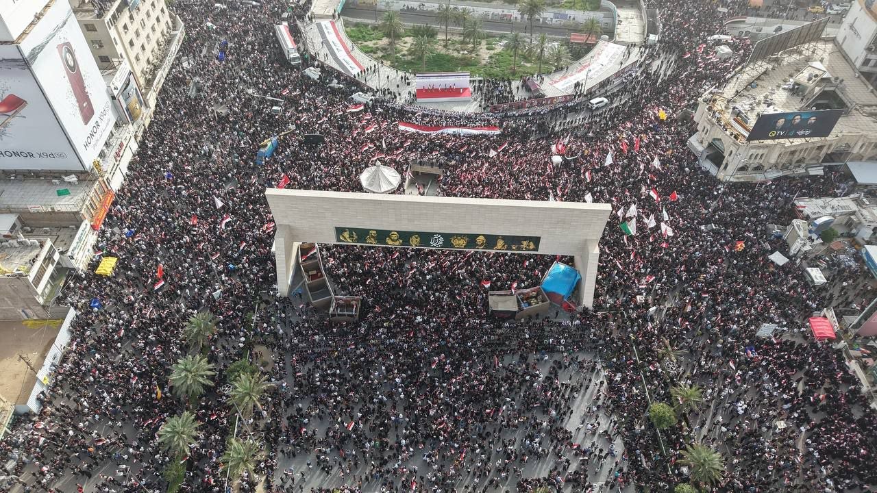 وردد أحرار العراق الشعارات المؤكدة على الرفض التام للعربدة الصهيوأمريكية، مجددين تضامنهم مع إيران في مواجهة العدوان، مؤكدين أن الاعتداءات الأمريكية على العراق لن تمر دون عقاب قاسٍ.