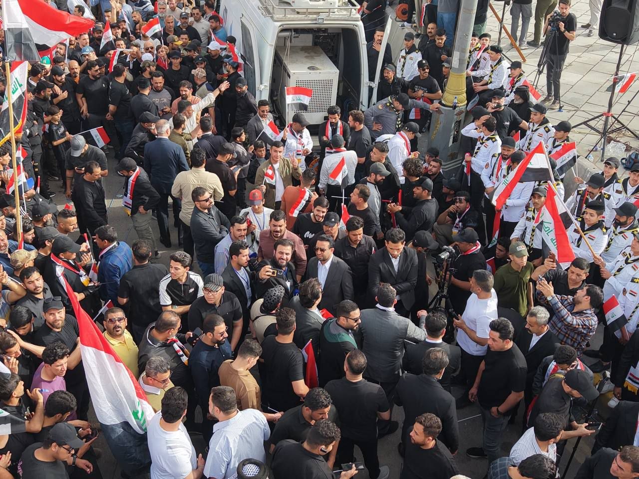 وفي المسيرات، رفع أحرار العراق أعلام الجمهورية الإسلامية في إيران، والجمهورية العراقية، وأعلام فصائل المقاومة العراقية، وعديداً من الأعلام العربية كرمزية للتضامن مع أحرارها الثوار الذين يتعرضون للقمع من قبل الأنظمة العميلة في البحرين والسعودية.