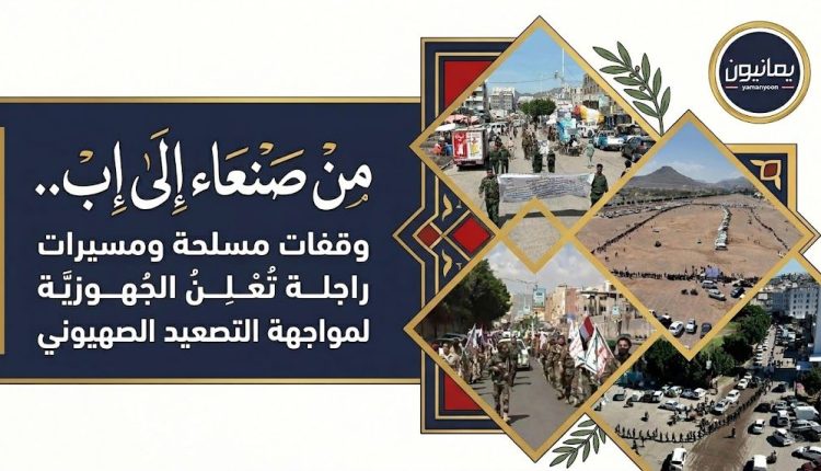 من صنعاء إلى إب.. وقفات مسلحة ومسيرات راجلة تُعلن الجهوزية لمواجهة التصعيد الصهيوني