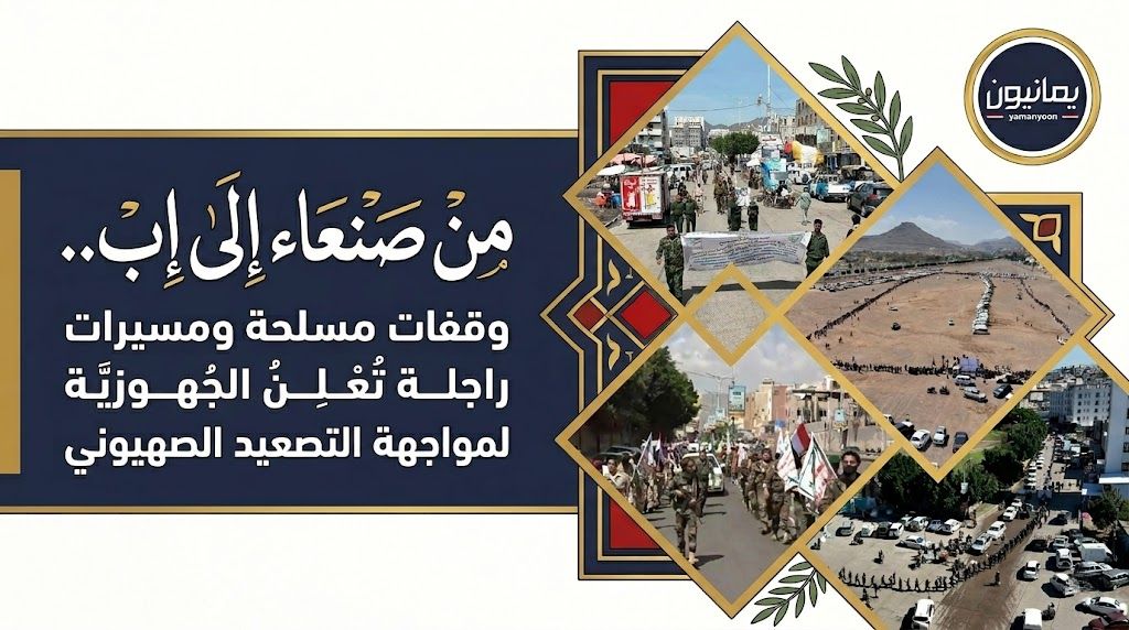 في مشهدٍ مهيب يجسد وحدة المصير وتلاحم ساحات الجهاد، شهدت أمانة العاصمة صنعاء ومحافظة إب اليوم حراكاً شعبياً وعسكرياً وأمنياً واسعاً.هذا الحراك جاء احتفاءً بالانتصارات الاستراتيجية التي حققها محور المقاومة، وتأكيداً على أن اليمن سيبقى الركيزة الصلبة والسند المتين لنصرة المقدسات، معلناً النفير العام والجهوزية الكاملة لمواجهة العربدة الصهيونية الأمريكية في المنطقة.