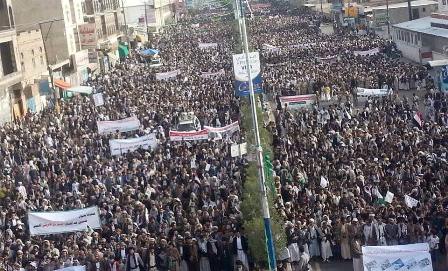 مسيرة جماهيرية بذمار تنديدا باستمرار العدوان السعودي والمطالبة برفع الحصار