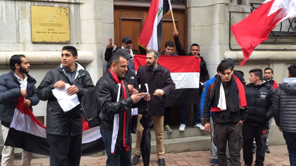A protest was held on Saturday in front of the Saudi embassy in Stockholm, Sweden to protest the Saudi-led Aggression coalition on Yemen, which started 38 days ago. Many people from Yemeni and Arab and Islamic communities attended the protest. The protesters carried the Yemeni flag and chanted against the Saudi-led Aggression and the blockade it imposed, which has hampered the public and private institutions from providing the essential services people need and led to a deterioration in the humanitarian situation.