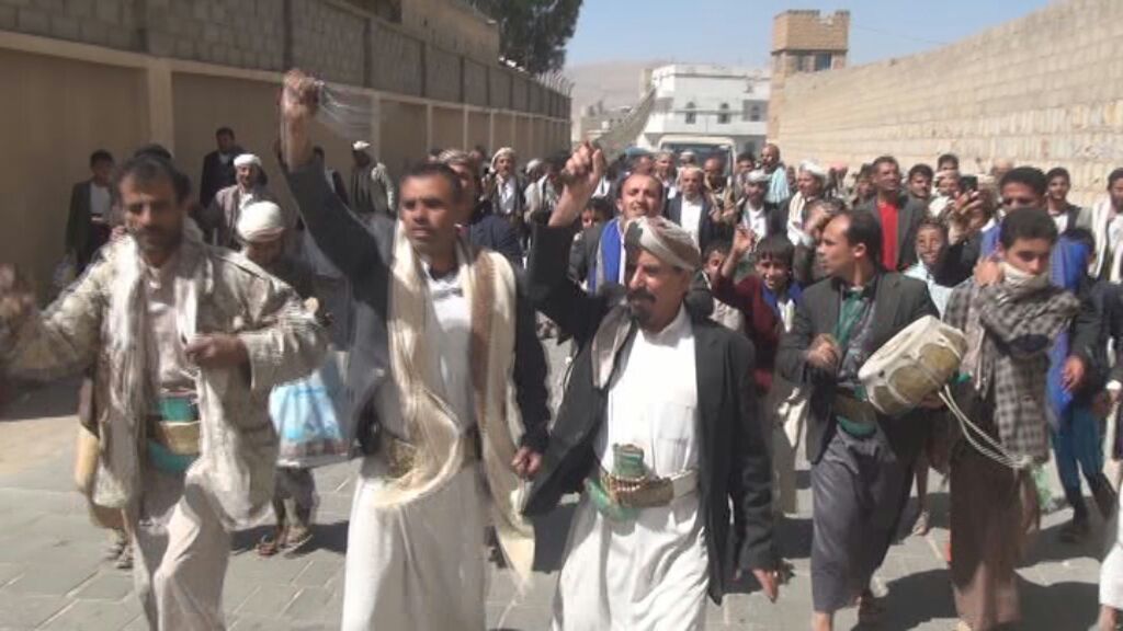نظم أبناء مديرية جبل يزيد ومدينة عمران اليوم مسيرة احتجاجية تنديداُ بالجريمة النكراء التي ارتكبها العدوان السعودي الهمجي باستهدافه لمجلس عزاء آل الرويشان في الصالة الكبرى بالعاصمة صنعاء والتي سقط على إثرها المئات مابين شهيد وجريح في جريمة لم يشهد لها التاريخ مثيل .