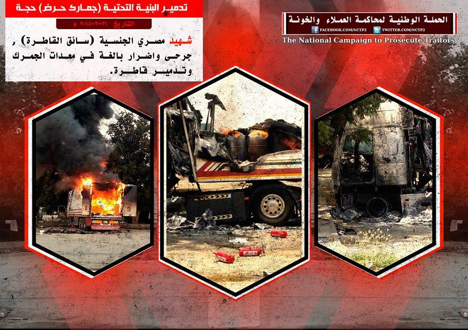 ويوم 31 مارس 2015م شن العدو السعودي عدة غارات جوية وقصف صاروخي ومدفعي على جمرك ” الطوال – حرض البري ” تسبب في احراق شاحنات عدد من السائقين المصريين تحمل بيوت خشبية متنقلة قادمة من الامارات