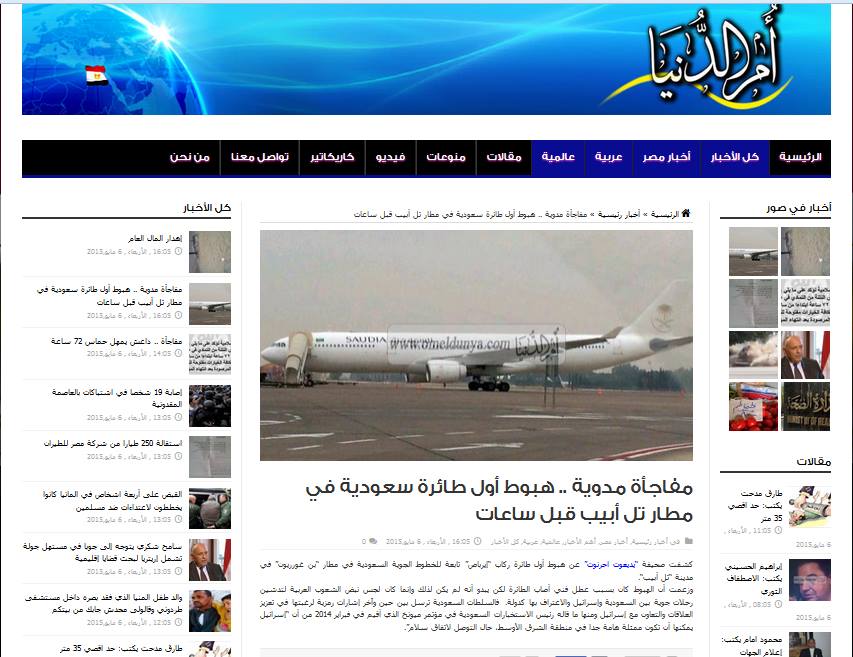وزعمت أن الهبوط كان بسبب عطل فني أصاب الطائرة لكن يبدو أنه لم يكن كذلك وإنما كان لجس نبض الشعوب العربية لتدشين رحلات جوية بين السعودية وإسرائيل والاعتراف بها كدولة.