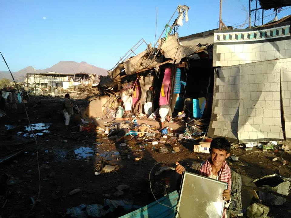 الاسواق والمحلات التجارية وسيارات المواطنين المركونة أمام منازلهم تحولت الى هدف استراتيجي للعدو السعودي الامريكي إثر تورطهم في مستنقع العدوان على اليمن دون مبررات منطقية سوى محاولتهم اسناد مشروعهم المنهار والمتمثل في محاولة دعوشة اليمن وتحويلها الى بيئة حاضنة للعناصر الاجرامية ” تنظيم القاعدة وداعش ” .
