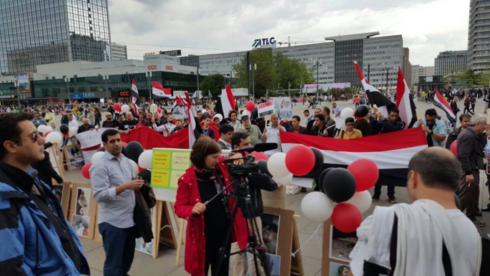 A protest was held today in Berlin, Germany, in solidarity with Yemen. The protesters condemned the Saudi-led Aggression on Yemen, and vowed to continue protesting in Berlin and throughout Europe until the Aggression on Yemen is ended. The protesters also held an exhibit to expose the crimes committed by the Saudi-led Aggression in Yemen since it began 45 days ago.