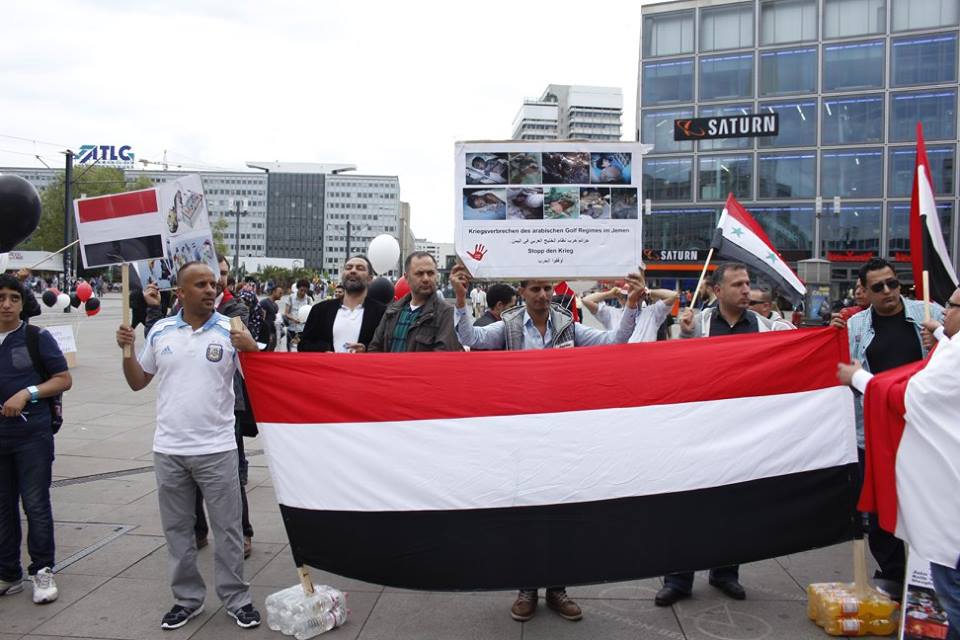 وقفة احتجاجية للجالية اليمنية والجاليات العربية بألمانيا للتنديد بالعدوان السعودي على اليمن