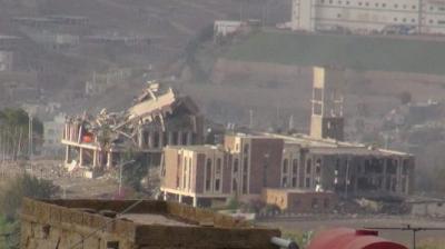 استشهاد 3 مواطنين وإصابة 7 في غارات جديدة للطيران العدوان على قلعة القاهرة التاريخية بتعز