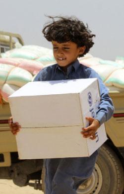 وبدأت المنظمات التابعة للأمم المتحدة بعمليات إغاثية واسعة، حيث أعطى وزير حقوق الإنسان اليمني في الحكومة المستقيلة، عز الدين الأصبحي، تصريحات لأكثر من 30 سفينة جاهزة للانطلاق من دول عدة باتجاه ميناء الحديدة وعدن والمكلا والمخاء، وتحمل مواد غذائية ومشتقات نفطية. وقال الأصبحي إنه ستُقدَّم معونات مالية سريعة والبدء في خطة النقل بالتنسيق والترتيب مع دول التحالف. وقد رصدت «اللجنة العليا للإغاثة» مبلغاً وقدره 30 مليون دولار لترتيب أوضاع العالقين اليمنيين في مصر والأردن والهند وجيبوتي وغيرها لإعادتهم إلى البلاد. بدورها، اقترحت الجزائر مبادرة للمساهمة في تخفيف حدة الأزمة الانسانية، تقضي بوضع مشرفين من منظمة الأمم المتحدة على ميناء داخل البلد يتفق طرفا الحرب عليه»، بحسب دبلوماسي جزائري أكد أن بلاده «أبلغت طرفي الحرب في اليمن عبر قنوات دبلوماسية بمضمون الاقتراح»، معتبرةً أن «أطراف النزاع» مجبرة على التنسيق لحل الأزمة الإنسانية.