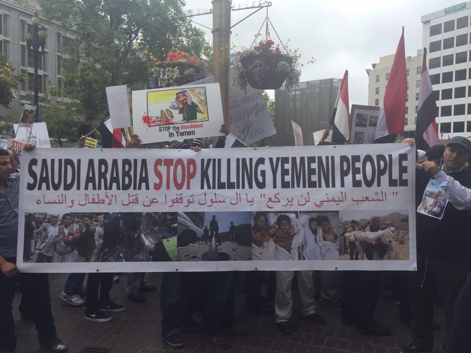 A march was held this morning in front of the State Capital in San Francisco, California in solidarity with Yemen against the Saudi-led Aggression. The marchers denounced the Saudi-led Aggression on Yemen as well as the complicit stance of the international community with the brutal and barbaric attacks on Women and children, and the displacement of thousands of families from their homes.