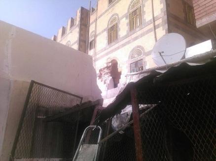 وأضافت أن صاروخاً أطلقته طائرات العدوان، ارتطم في باحة أحد المباني في شارع حدة، ملحقاً أضراراً بسيارة أحد المواطنين، ثم اخترق جدران عمارة المواطن مثنى صالح العولقي.
