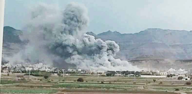وفي حالة من الهستيريا جاءت ردة الفعل السعودية الأمريكية تجاه تهاوي قلاع واوكار عملائها المأجورين في المنطقة ، شن الطيران المعادي عدة غارات على منطقة “جعولة” ومحيطها السكاني .