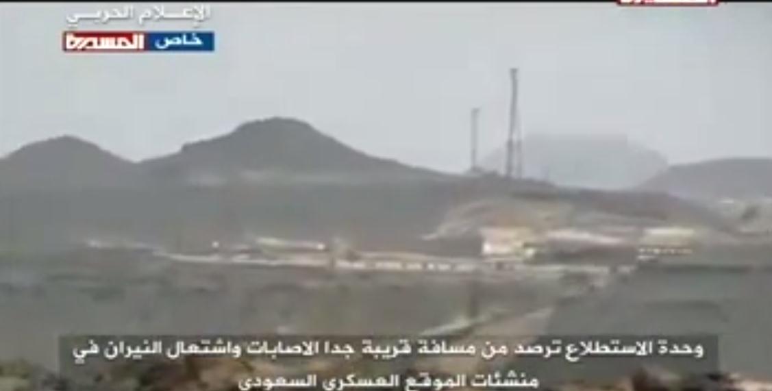 ورصدت وحدة الاستطلاع من مكان قريب بمشاهد الفيديو ألسنة النيران وهي تلتهم عدد من منشآت المعسكر السعودي.