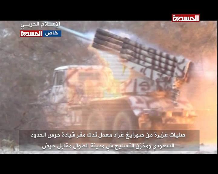 قال مصدر عسكري إن الجيش واللجان الشعبية قصفوا مقر قيادة حرس الحدود السّعودي ومخزن التسليح في جهة منطقة حرض بصواريخ غراد معدلة.