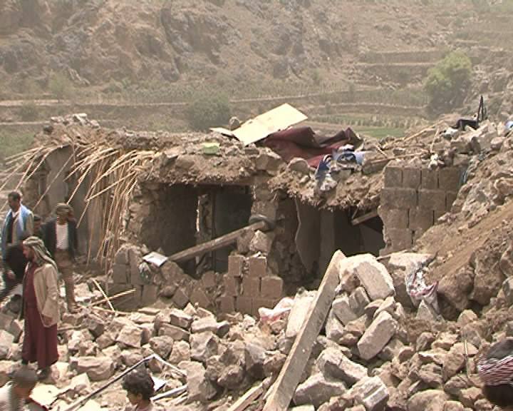 وشن طيران العدوان أيضا عدة غــارات على منازل ومــزارع المواطنين في المديرية ، حيث اســتهدفت غارات العــدوان مســجداً ، ومشروع الميــاه متســببة في دمارها بالكامل.