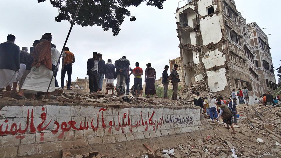 14/6/2015م، والذي يعدُّ أول جامعة إسلامية في الجزيرة العربية بشكلٍ خاص وفي العالم بشكلٍ أجمع، ومن قبله بيوم تدمير قلعة (حرم) التاريخية بمديرية رازح بمحافظة صعدها، ومن قبلها بيومين استهدف مدينة صنعاء القديمة الذي وصفها بيان الاستنكار والإدانة التي أطلقته منظمة اليونسكو بأنها إحدى جواهر الحضارة الإنسانية العالمية ليدمر ثلاثة من أجمل بيوت صنعاء القديمة وبالذات الإطلالة الجميلة لبيوت بستان القاسمي، كما تضررت عدد (4) منازل أخرى.